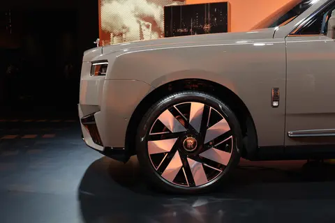 来到车侧,库里南系列 II 的车身轮廓仍呈现出丰富的变化,并首次配备 23 吋的轮圈,每个轮圈均由铝锭铣削制成,而其中 7 辐立体型面设计则为客户提供了局部抛光工艺或全面抛光工艺两种轮圈配置选项。此外,库里南系列 II 还拥有了专属开发了全新漆面:「松露石纹棕」,其灵感源自一种带有如松露般纹理的浅棕色大理石,呈现出颇具现代化风格的灰棕色调复合纯色饰面。