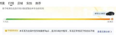 车况暂时先不了解了,那我们来看看车况以外的内容吧。二手车不同于新车,在日常使用过程中,难免会出现一些小状况。比较常见的就是车辆剐蹭导致的外观覆盖件划伤、剐蹭、凹陷、变形等,比较严重的就是车辆发生过重大事故、或者泡水、过火等等。而我们购买二手车的时候,肯定都希望买到车况好的车辆,花高价买到车况差的二手车肯定是不划算的。基于此,懂车帝针对每一辆准备出售的二手车,都会进行严格检测,并出具权威的检测报告,以确保买家买的放心。好了,话不多说,先进性看下这辆车在懂车帝平台上的市场行情如何吧。