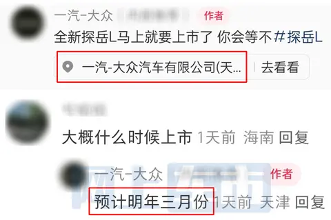一汽-大众天津工厂员工表示,全新探岳(图片|配置|询价)L预计明年3月上市,价格可以参考途观L Pro;现款探岳不会停产,将与前者共线生产、同堂销售。参考途观L Pro(全系2.0T)的价格,预计探岳L(1.5T/2.0T)的售价区间在21-27万。