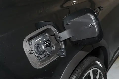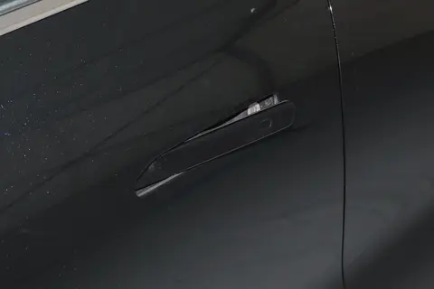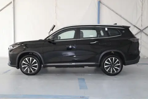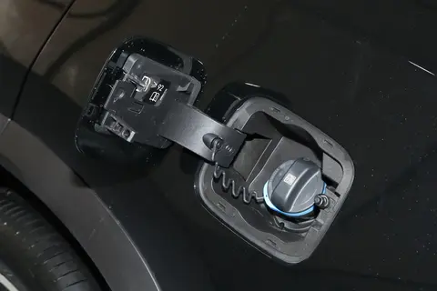 风云T8车侧型面平整,车身下部加入黑色侧裙以及银色装饰,实拍车型配备了隐藏式门把手、全景天窗、十辐式双色轮辋等,加油口与充电口分别位于车身两侧后翼子板处。