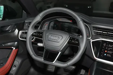 来到车内,奥迪A7L的内饰自然也是运用了当前奥迪的家族化设计。方向盘有两种造型,黑武士版采用三幅式平底设计,其他则采用圆形四幅式设计,前者更个性运动,后者则彰显豪华科技,内饰质感营造得还是相当不错的。