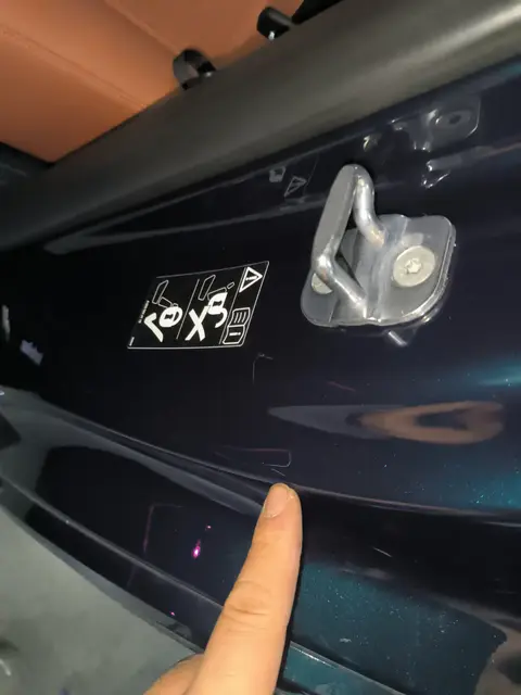 在事故检测部分,这辆二手奔驰GLC通过了23项检测,仅有1项小瑕疵,为左C柱封边划痕,这并不影响车辆的安全性能。接下来,我们将为您展示左C柱封边划痕的实拍图。