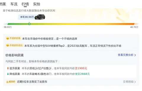 综上所述的新车含税价、用车成本、市场行情、优势分析、同款比价等数据仅供参考。在配置部分,因为二手车非标品,车辆可能会存在配置改装的情况,具体车况信息需要线下结合车辆实际情况进行综合参考。