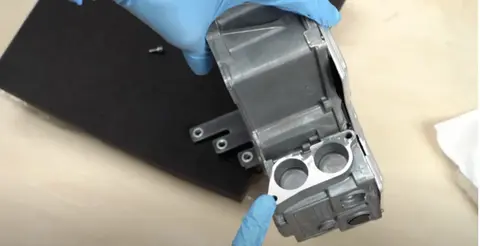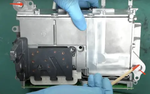 总的来说,这款逆变器给人留下了深刻的印象。奥迪e-tron的逆变器由日立汽车制造,现隶属于Hitachi Astemo,产自日本。逆变器的主要部分虽然尺寸小巧,但设计复杂且精密。每个部件都像拼图一样完美贴合,显示出极高的设计工艺。