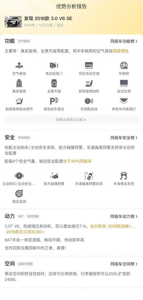1.动力性能:路虎发现搭载的3.0T V6发动机在动力输出方面表现出色,优于部分竞品车型。