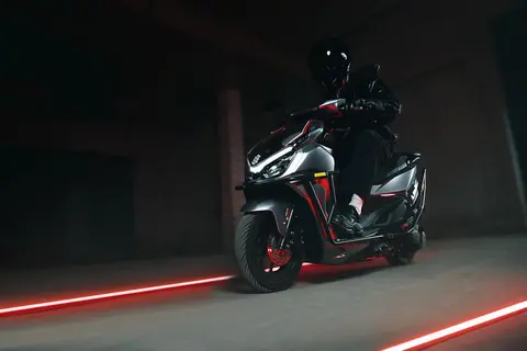 第一眼见到鸿150RS,它会须会给到你不错的视觉冲击力。这种机甲风的设计,配合有肌理效果的线条,的确在踏板车当中较为少见。尤其有特色的是采用透明式前面板设计,让原本单调的踏板车造型有了更好的聚焦点。此外,鸿150RS还采用了经典的双鹰眼大灯布局,大灯和日行灯均采用LED光源,照明效果出色,进一步提升了整车的辨识度。