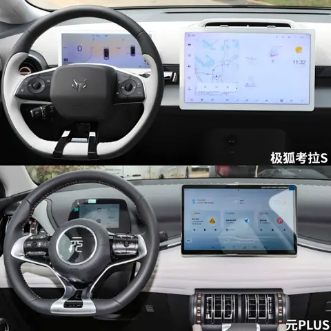 座舱氛围方面,极狐考拉S的内饰主打的就是科技,除旋转中控大屏,左右两侧还有液晶仪表屏幕。此外它的实体按键很少,操作便捷性也很高,内饰的整体设计很简约。至于比亚迪元PLUS,它在座椅设计与舒适性方面表现出色,确保了驾乘者的舒适体验,但是在智能配置上表现略差。极狐考拉S座椅采用仿皮材质,易于打理且兼具质感与舒适。填充物软硬适中,支撑与舒适并重,长途乘坐不易疲劳。主驾座椅多向可调,中高配副驾电动调节,提升乘坐便利性。比亚迪元PLUS的头枕设计合理,强化颈部保护。后排座椅承托性佳,支持比例放倒,灵活实用。极狐考拉S配备通风加热功能,四季皆宜。一体式运动座椅融合运动感与精致感,展现高工艺水平。人体工程学设计贴合身体曲线,减轻疲劳。如此来看,相比比亚迪元PLUS的智能座舱,极狐考拉S的优势更为明显。