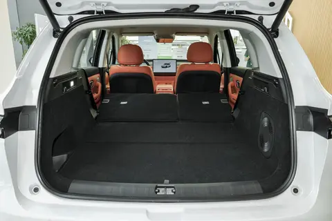 后备厢常规容积370升,后排座椅靠背能按比例放倒,全部放倒之后最大容积能拓展到800多升,能放下10个24英寸的行李箱,车内另外还有26处储物空间和5处杯托,每个人都能被照顾到。前排座椅设计了可插拔头枕,靠背往后放平可以实现180度放平,跟二排座椅连在一起,能形成大躺椅状态,中午午休小憩很实用。
