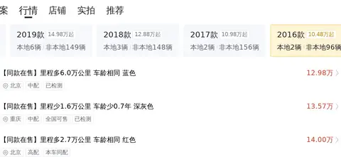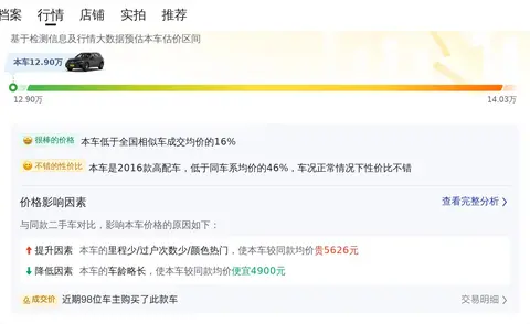 这辆车的当前市场行情在12.26万-15.01万之间,根据车况不同,价格会有较大差异。这辆车的报价处于中间水平,优势不明显。不过,它的保值率较高,未来几年内折价较少。