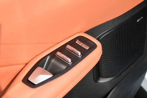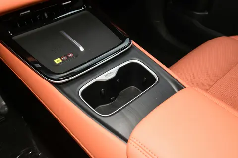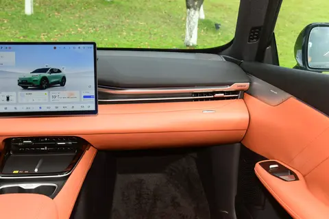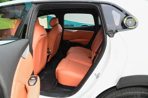 内饰是阶梯式的设计。仪表台设计了层叠式的线条,增添了活力功感。整体内饰在细节上花了功夫。无论是方向盘的辐条还是杯架的镀铬包边,又或者是出风口和车门上的实体按键等,质感都挺不错的。有强烈的自我色彩,营造出强的细节感和氛围感。配置也堆了起来。50W无线充电板,带天空声道的14扬声器音响系统,64色车内氛围灯,6kWVTOL移动电站功能,车载空气净化器和车内PM2.5过滤装置等都有。