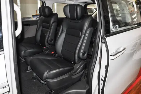 传祺E8+的车身尺寸为4920/1900/1760mm,轴距2930mm。车内采用2+2+3的七座布局,相比一些六座MPV,七座的好处就是多一个座位,偶尔应急时能派上用场。第二排座椅支持通风、加热、按摩功能,能一键躺平,形成一个舒适的休息空间。而且还新增了二排小桌板,用来放平板、手机或者孩子的零食都挺合适。第三排的空间表现比一般的七座SUV更舒适,腿部和头部空间都留得比较充裕。