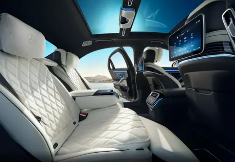 25款奔驰S级的内饰同样也是老款车型的内饰设计,车内的科技感和氛围感都是很在线的,前排配有平视显示系统、12.3英寸3D数字仪表屏、12.8英寸OLED中控屏,而且在后排还有7英寸的MBUX智能平板电脑以及双11.6英寸MBUX后排娱乐系统,车内标配真皮座椅、主副驾电动调节和前后排座椅加热功能,至于其他的舒适性配置,则都需要进行选配,这一点对于一款大型豪华旗舰轿车还是不太应该的。