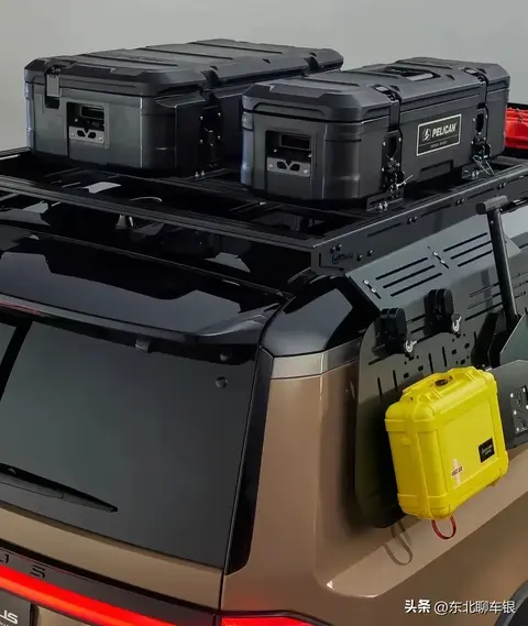 车身侧面,大尺寸的黑色轮眉,就像给车穿上了一双大皮靴,不仅看着霸气,还能增加车辆的稳定性。车顶的置物平台,那用处可老大了,出去玩的时候,绑个自行车、放个帐篷啥的,都不在话下。侧爬梯和侧背包的设计,更是让这车的越野味儿直接拉满。想象一下,开着它去野外,把侧爬梯一放,直接就能爬到车顶,那得多酷。