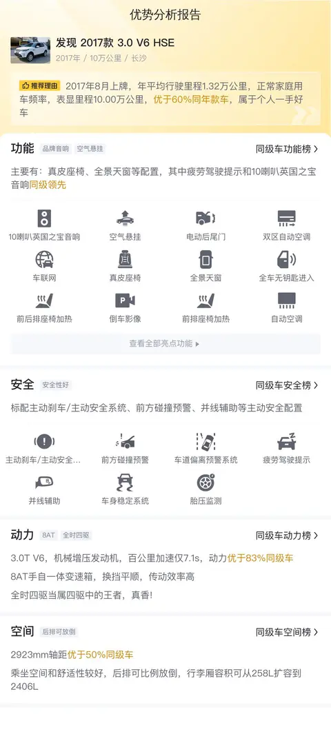 综上所述的新车含税价、用车成本、市场行情、优势分析、同款比价等数据仅供参考。在配置部分,因为二手车非标品,车辆可能会存在配置改装的情况,具体车况信息需要线下结合车辆实际情况进行综合参考。
