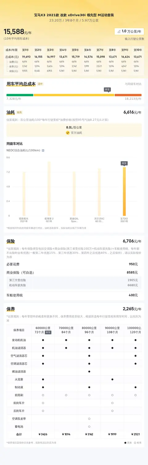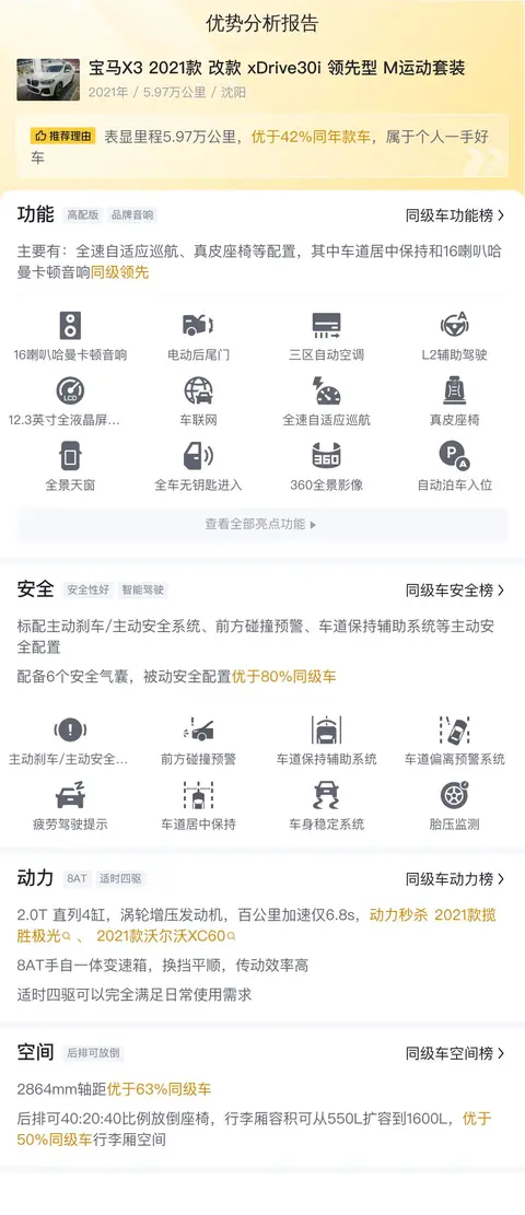 综上所述的新车含税价、用车成本、市场行情、优势分析、同款比价等数据仅供参考。在配置部分,因为二手车非标品,车辆可能会存在配置改装的情况,具体车况信息需要线下结合车辆实际情况进行综合参考。