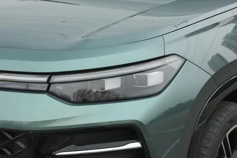 车身侧面线条平直,车门上勾勒着隆起的腰线和裙线,从而显示出灵动的层次感;车尾设计主要和前脸造型形成呼应,车顶向后延伸的尾翼正中装置有横向的高位刹车灯,与下方横置贯穿的尾灯组件上下辉映,点亮后视觉效果显眼。则此外,我们去试开的车型在外观配色上使用了此次新车定制的哑光云杉青,实际肉眼看下来的话,哑光的车身涂漆确实挺有质感的,再配上车头、侧面以及尾部的熏黑运动组件,整体车身颜值有档次的同时还有几分年轻范儿。