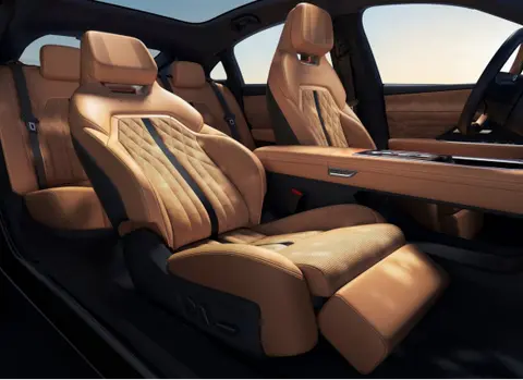 用料和配置,向来是合资车相比国产车的劣势所在,EZ-6则成了个例外。它的内饰部分采用了NAPPA真皮和可再生麂皮绒的高级面料组合,而且前排配备了双零重力座椅,全车配备14个SONY高品质扬声器、64色氛围灯,无论用料还是配置都堪称豪华。