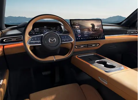 长安马自达EZ-6采用了E-ZONE智能座舱,它的内饰布局堪称脱胎换骨,只有从方向盘等少数细节处能看到马自达过往车型的影子,而这种改变的方向无疑是化繁为简。它简化了中控部分的按键和挡把,换来了14.6英寸的中控大屏、50W的手机充电座、杯架,以及镂空中控台下的大空间利用率 。