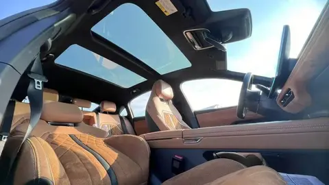 车身侧面,“穹影曲面”的设计手法使得车身线条流畅自然,溜背式的轿跑造型赋予了车辆动感的身姿。顺滑的腰线从前大灯一直延伸至尾灯,不仅增强了车身的立体感,还在视觉上拉长了车身的长度。50:50的完美车身轴荷比,搭配19英寸的大尺寸轮毂,使整车看起来更加稳重且富有运动气息。无框车门和隐藏式车门把手的设计,不仅提升了车辆的美观度,还降低了风阻系数,进一步提高了车辆的能效。