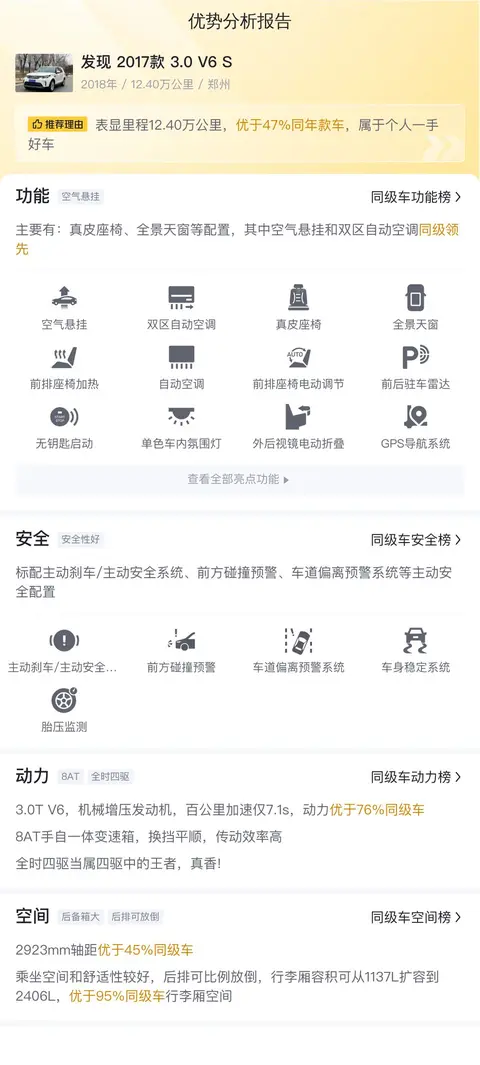 综上所述的新车含税价、用车成本、市场行情、优势分析、同款比价等数据仅供参考。在配置部分,因为二手车非标品,车辆可能会存在配置改装的情况,具体车况信息需要线下结合车辆实际情况进行综合参考。