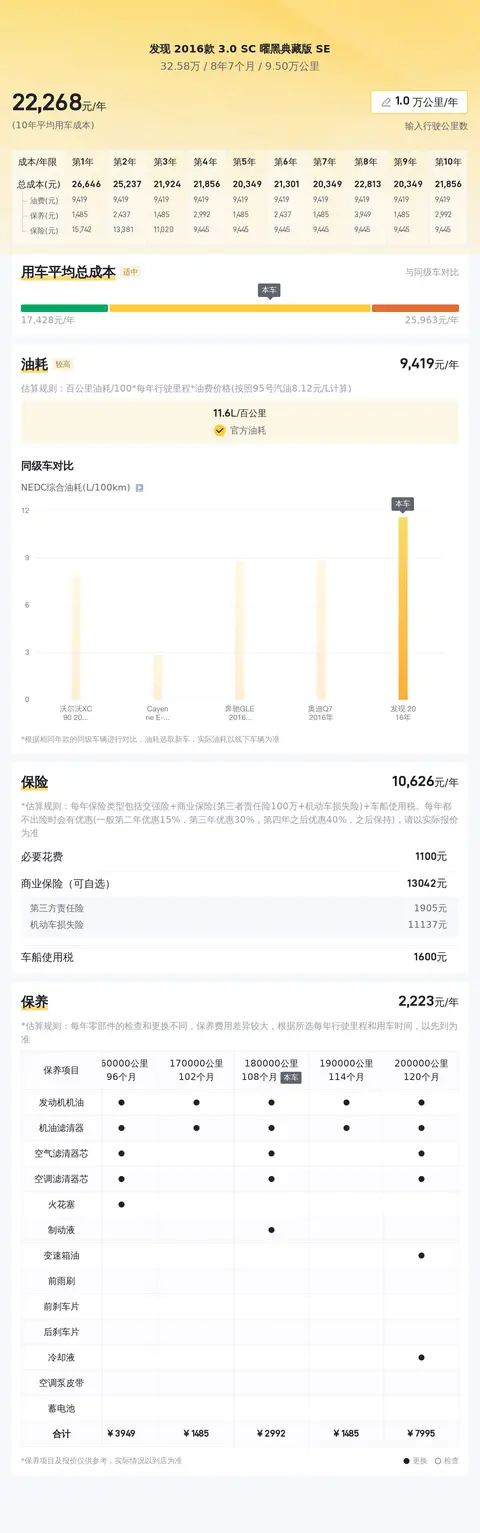 用车成本方面,根据估算,该车的年均综合用车成本在2.2万元左右,但受油价波动、用车频率等因素影响,这个费用可能会有所变化。