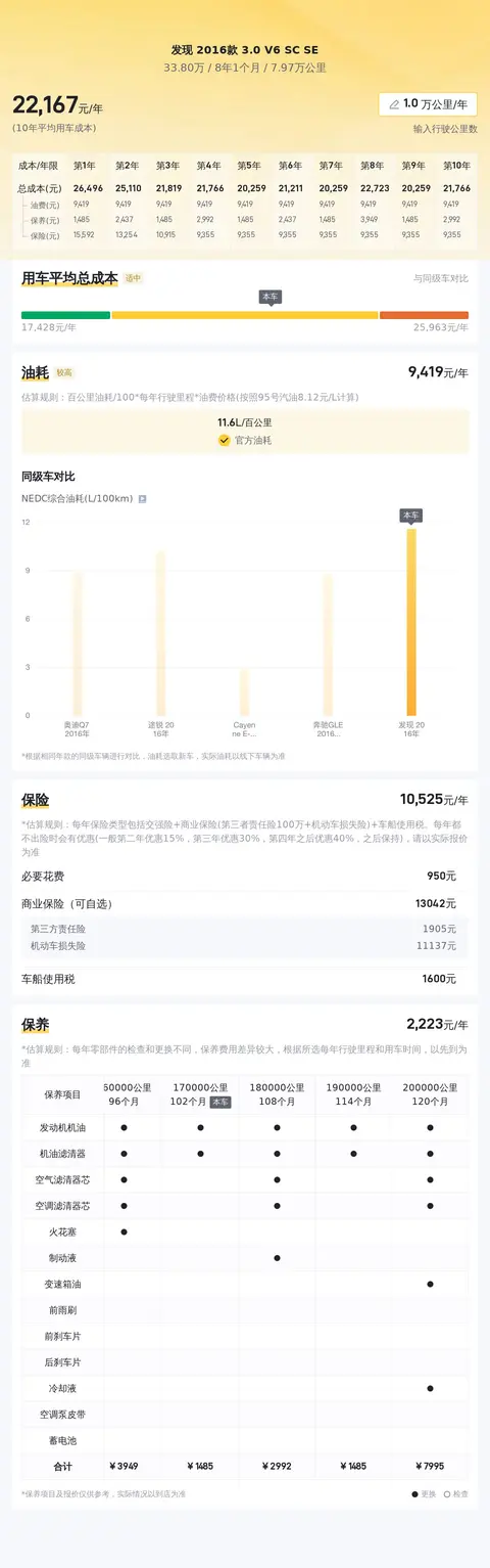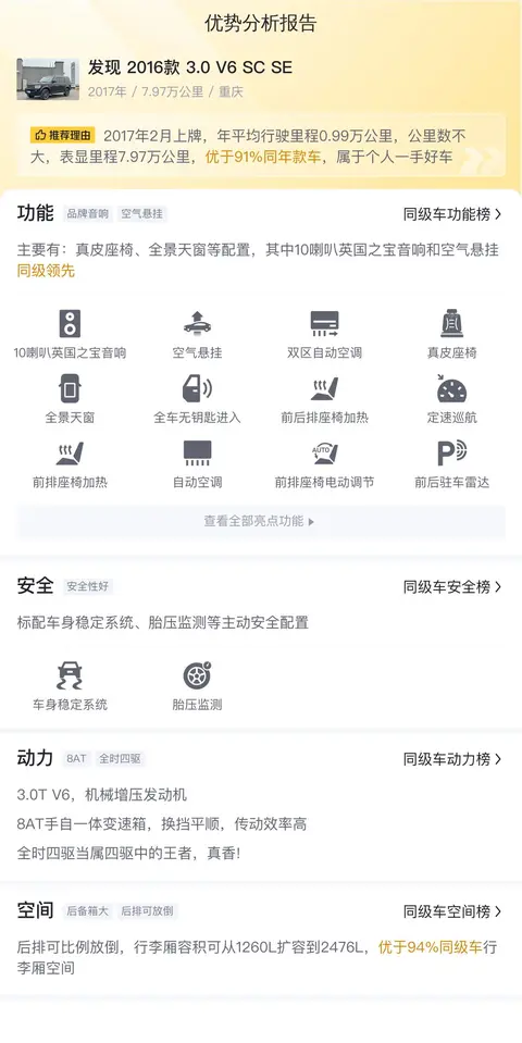 车辆款型:发现 2016款 3.0 V6 SC SE