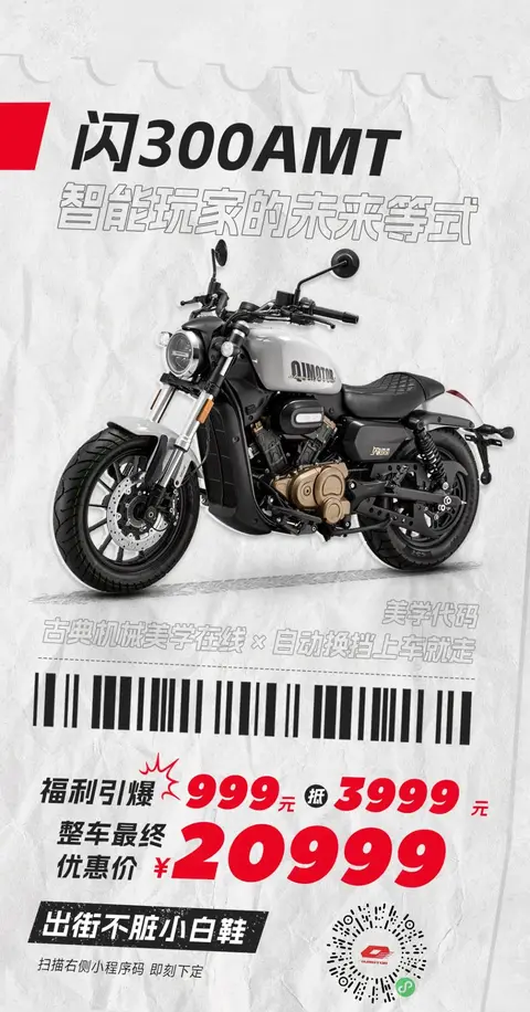 2025年,巡航摩托车市场中最引人瞩目的词语大概就是AMT,这一先进技术的引进无疑为很多新手摩托车爱好者和女性骑手敞开了大门,大大降低了巡航摩托车的骑行难度 。骑士们即可以轻松享受骑行带来的乐趣,又不必为此花费大量的时间专门练就成熟的车技,这一改变完全迎合了智能化的现代生活节奏,紧紧跟住了时代的步伐,而每一次变革与创新中钱江总是能把握住微妙的先机,帅先在闪系列巡航摩托车中推出了AMT技术,今天我们就先来聊一聊比较热门的量巡航摩托闪300吧。
