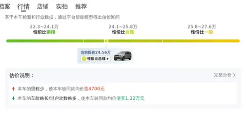 根据大数据预估显示,这辆车在当前车况下的市场行情大约在20.7万至25.7万元之间。这个价格区间为潜在买家提供了较为合理的参考范围,但最终成交价还需考虑车辆的具体情况、卖家报价以及市场供需等多种因素。