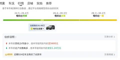 目前的二手车市场,该车型的售价在23.85-30.31万之间,具体售价因车况而有所不同。这台二手车的售价26.48万,属于正常范围之内,在车况良好的基础上,这个价格还是比较合适的。
