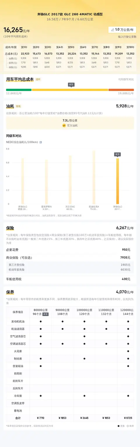 当然,购车时不仅要考虑购车成本,也要衡量下用车成本是否可以接受。根据估算,这辆车年均综合用车成本大概在每年1.6万元左右。这项花销是跟车主的实际用车场景和使用强度有直接变化的。好了,以上就是关于这辆车的一些介绍,如果您对这款车感兴趣,欢迎交流。