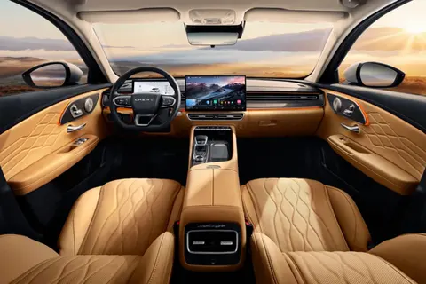 座舱方面:艾瑞泽8PRO内饰采用涟漪掠影绗缝,光韵波纹压印,灵曜胡桃木纹设计,看上去就很优雅大气,同时兼顾科技感豪华感。超大的座舱空间布局,搭载舒云座椅,配备了电动调节、通风按摩加热记忆功能,以及腰托,柔软亲肤带来0甲醛,0异味,0重金属。