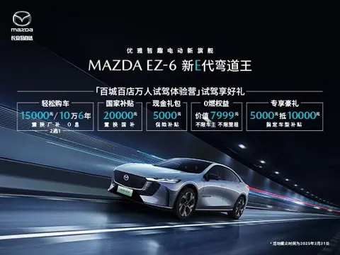 先从价格说起,马自达 EZ-6 2024 款纯电 480 智悦版厂商指导价为 15.98 万。近期,长安马自达针对 EZ-6 开展了 “百城百店万人试驾体验营” 活动,同时发布了一系列购车权益。购车者能享受 15000 元置换厂补、20000 元置换国补、5000 元保险补贴。要是不选置换厂补,还能选择 100000 元尾款 6 年 0 息的金融方案。购买指定车型能享受 5000 元抵 10000 元的优惠,另外还赠送价值 7999 元不限车主、不限里程的终身零燃权益。这么多优惠算下来,实际到手价格能降低不少,性价比一下子就凸显出来了。与同级别其他新能源中型轿车相比,这样的价格和优惠力度,能让消费者以更实惠的价格,买到配置丰富、性能不错的车型。