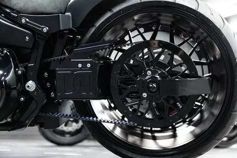 今天分享的依旧是来自漂亮国的定制商“DD Designs”基于哈雷戴维森突破者Breakout改装的作品命名为幽灵“Wraith”,比起前天那辆未来感十足的Sportster S来说这辆作品才是秉承了“DD Designs”的一贯的风格,一眼望去就是单摇臂、定制轮毂、大宽胎和排气系统,然后就是油箱,车把、挡泥板、座椅、刹车,配色就不用说了还是主打一个字“黑”。
