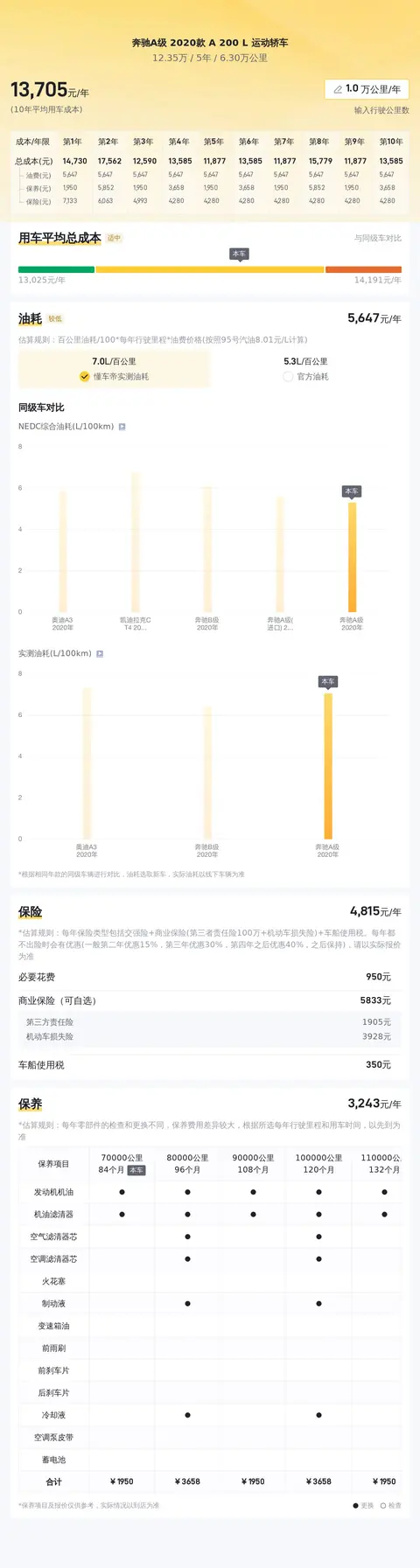 买二手车不同于买新房,在日常使用中,难免会有刮刮蹭蹭的情况发生,当出现了不可避免的微瑕时,合理的维修费用才是考验一款车性价比的关键。根据懂车帝平台数据显示,这辆车的年均综合用车成本约14520元。