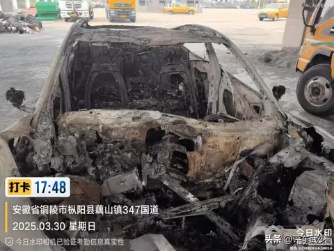 事故发生后,现场惨状令人痛心。车辆前脸严重变形,几乎完全损毁,车身被大火烧得只剩焦黑的框架,周围弥漫着刺鼻的气味。事故现场的照片和视频在网络上迅速传播,瞬间引发了全网的高度关注和热议,大家纷纷对事故原因、车辆安全性以及智能辅助驾驶系统的可靠性提出质疑。