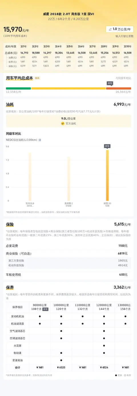 在用车成本部分,根据我们的估算,这辆车的年均综合用车成本约1.6万元左右。不过这项花销跟车主的用车场景和使用强度有直接关系,所以具体费用还是以车主的实际情况为准吧!