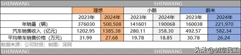 其中,理想汽车的平均单车销售价格由2023年的31.99万元降至2024年的27.68万元;小鹏汽车的平均单车销售价格2023年的19.78万元降至2024年的18.85万元;蔚来的平均单车销售价格2023年的30.78万元降至2024年的26.24万元。