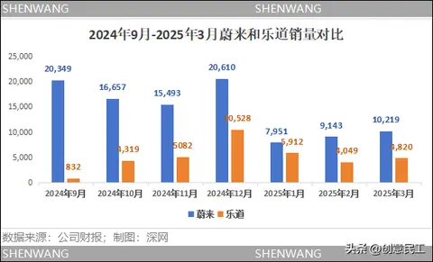 蔚来2024年9月才推出的乐道L60(起售价20.69万元),其2024年12月单月销量就能达到主品牌蔚来的一半。
