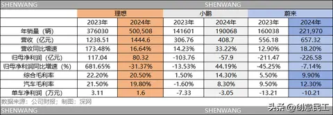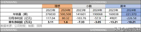 根据2023年及2024年理想的归母净利润及年销量粗略计算,2023年理想汽车的单车利润约3.11万,2024年约1.6万元,降幅约48.6%。