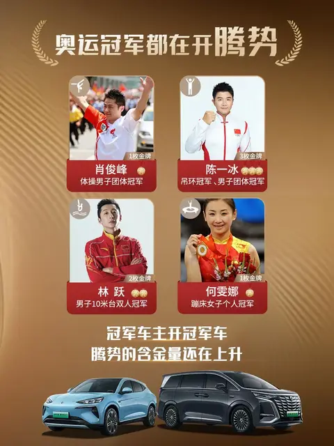 当腾势D9在商圈掀起“移动董事会”潮流时,福耀曹晖、游戏科学冯骥等大佬早已把第二排头等舱座椅焊成了商务谈判主战场——毕竟能180度躺平签亿元合同的车,可比办公室真皮沙发带感多了!奥运冠军张雨霏、汪顺更是直言:“开MPV王者就该配冠军奖牌,这后排空间装奖杯架都够用”!吊环冠军陈一冰、体操团体冠军肖俊峰等奥运健儿也都纷纷将座驾换成了腾势。