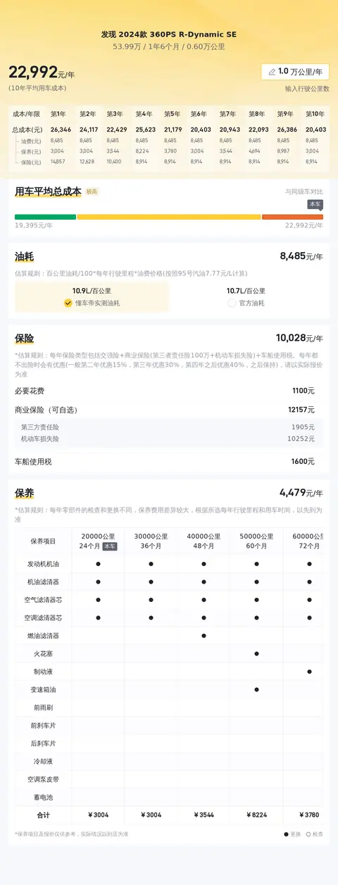 车辆的使用成本我们也帮您梳理好了,通过下方的图片,您可以更直观的了解到这辆车的用车成本在同级别车型中是什么水平。