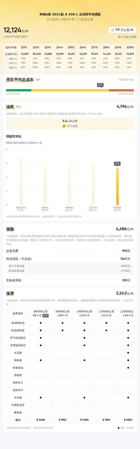 根据估算,这辆车年均综合用车成本大概在每年1.2万元左右,不过这个跟车主的实际用车场景和使用强度不同会有差异。