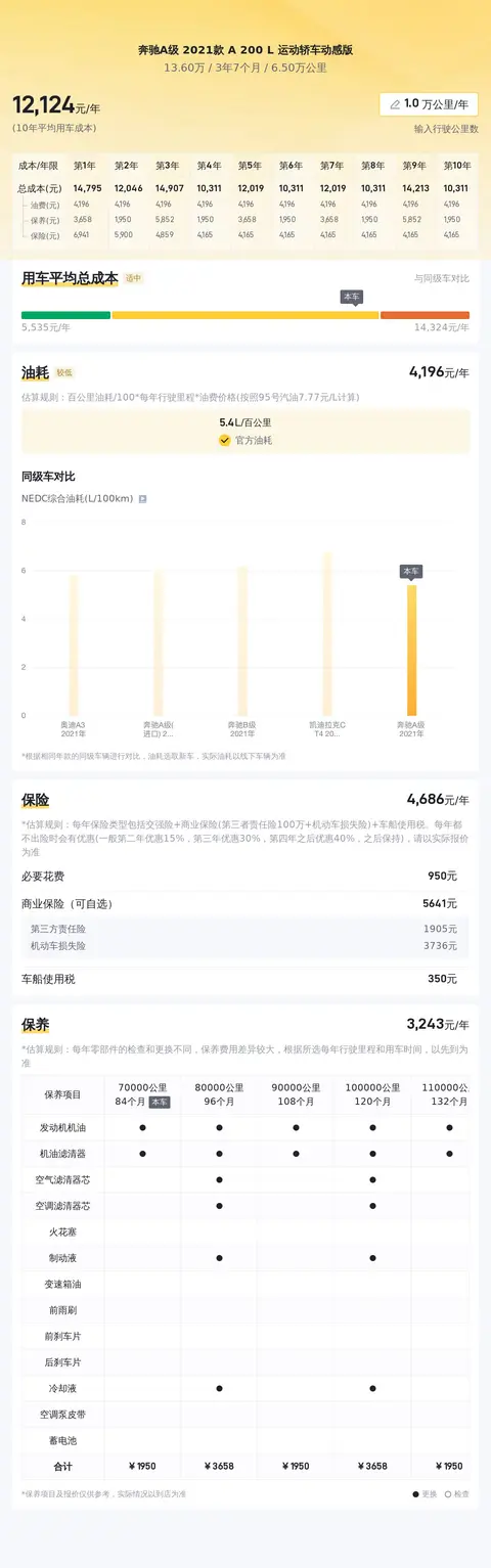 在用车成本方面,根据粗略估算,这辆车的年均综合用车成本约为1.2万元左右,但实际支出会因个人使用习惯及维护情况而有所不同。