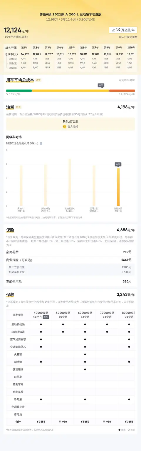 这辆车的用车成本方面,根据懂车帝官方大数据分析,该车型的10年平均用车成本约为12,341元/年,与同级别车相比处于适中的水平。这里要说的是,用车成本会根据不同车主的使用习惯和选择的保险等有所不同。