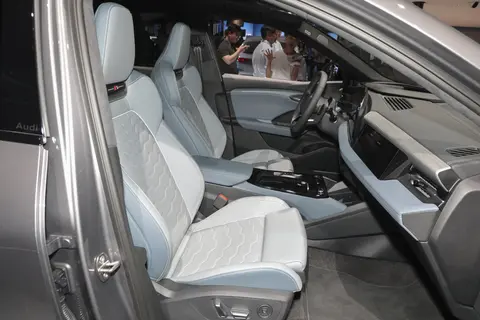 国产奥迪Q6L e-tron采用5座布局,前排座椅头枕位置带有S标识,预计支持腿托调节。第二排座椅支持40:20:40比例分割放倒,提供后排中央扶手及杯架、后排空调出风口、可开启式全景天窗、后备厢置物帘、电动尾门、后备厢照明、下沉式储物格等细节配置。