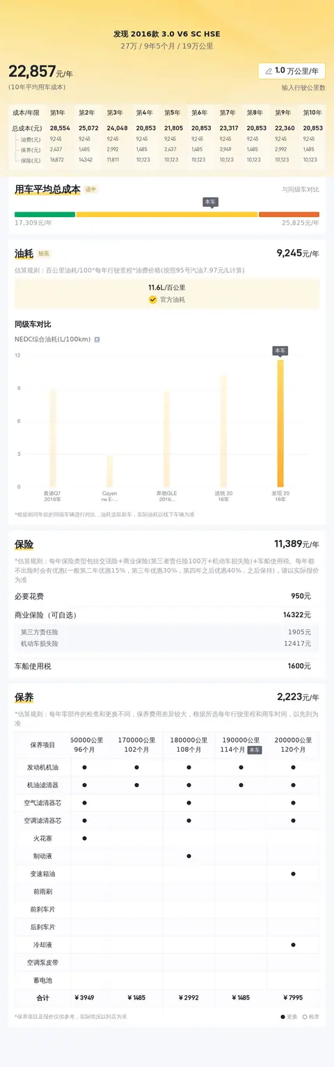 除了性价比,您肯定还会关心这辆车的使用成本。根据大数据统计,该车型的使用成本在前几年是一个逐渐下降的过程,车辆使用8年后,使用成本基本稳定在2.3万元左右。
