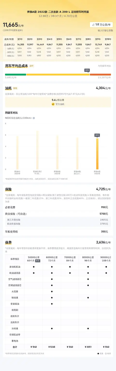 接着,我们估算一下这款车的用车成本,不过需要说明的是,以下数据仅供参考,实际用车成本受多种因素影响。