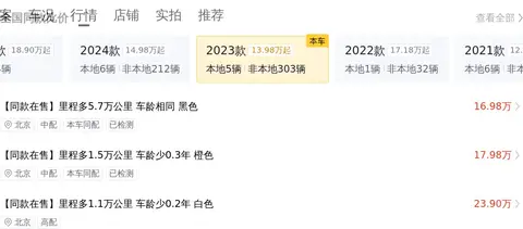 接下来,我们介绍一下决定二手车价格的主要因素:车龄、里程和过户次数。这些参数直接影响着车辆的价格。具体影响如下:车龄较少,少于均值0.1年,加价300元;里程较少,少于均值2.2万公里,加价5200元;过户次数较少,少于均值0.3次,加价600元;颜色为橙色,加价447元。综合以上所有优势和因素,这辆车的估价在16.3万至19.13万之间,而本车售价17.8万,处于合理适中的价格,同时这款车在全国越野SUV车型中销量排名第四,证明其受到了消费者的广泛认可和好评。