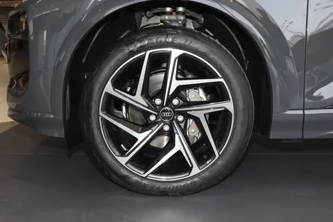 奥迪Q6L e-tron的车侧线条也延续了奥迪以往车型设计风格,前后翼子板处带有隆起的肩线,与车门下方的黑色装饰一起,增强了视觉力量感。实拍车型还使用了内嵌式门把手,并搭配有21英寸半封闭式轮辋,采用的轮胎尺寸为前255/45 R21,后285/40 R21。