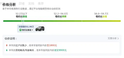 关于这款车的保值率,我们也做了相应的估测。目前,该车售价51.98万元。根据预测,如果再行驶两年后,它的售价大约可以达到42万元,折价率约为18.2%。这个保值率在二手车市场中相对较高,显示出这款车具有较好的价值保持能力。